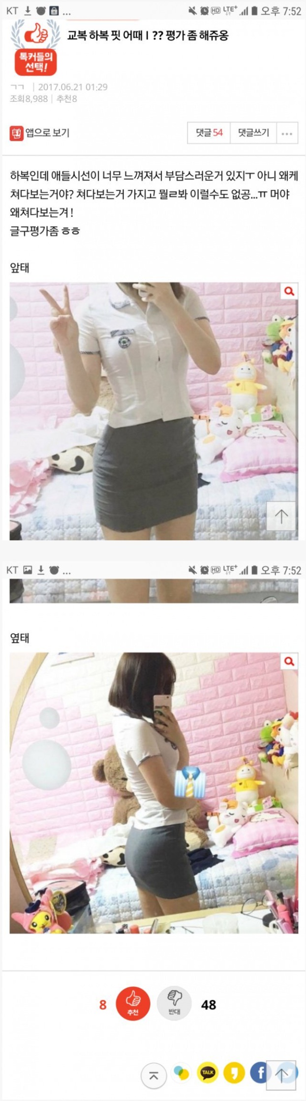 (후방) 고딩때 입었던 교복을 입어봤는데…
