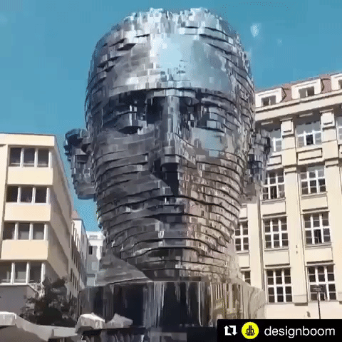 유명한 조형물 작가 David cerny 의 소설가 프란츠 카프카 얼굴을 키네틱으로 만든 조형물 2014년작 kafka 입니다.