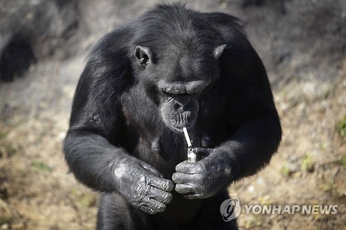 침팬지가 담배피고 다님 ㄷㄷ