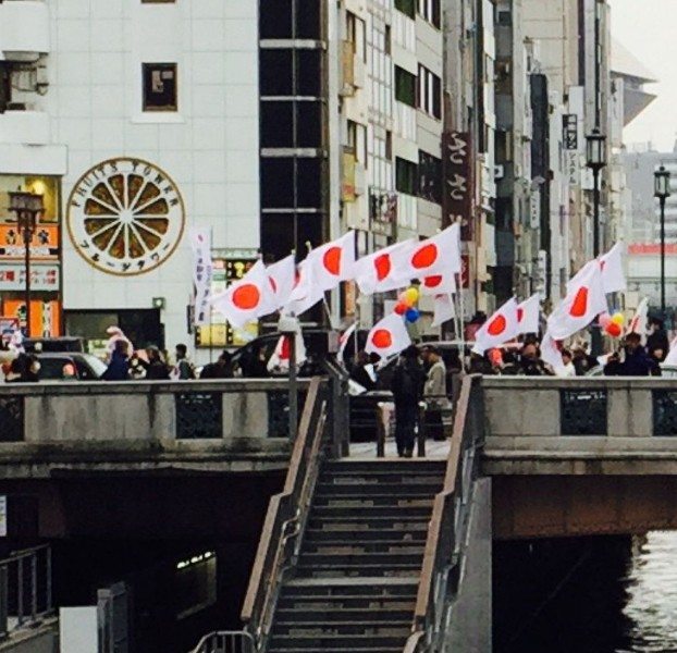 근데 저쪽 멀리서 일장기들고 확성기로 고래고래 고함치며 다니는 일본인 대열을 봄.
