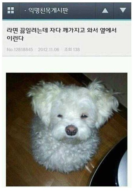 - 라면을 끓이는데 옆에 온 강아지