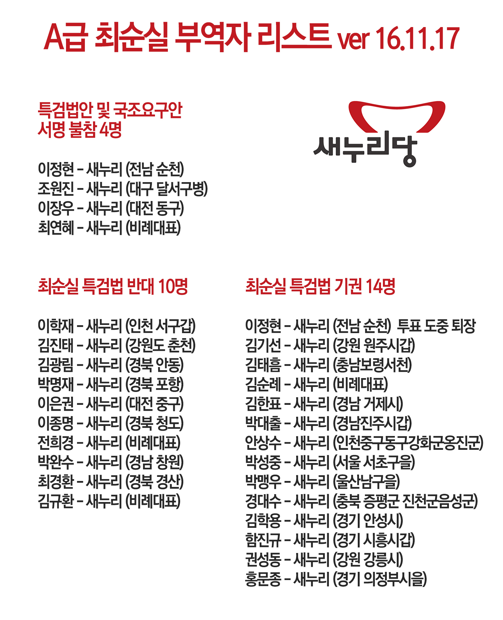 - A급 최순실 부역자 리스트 ver 16.11.17