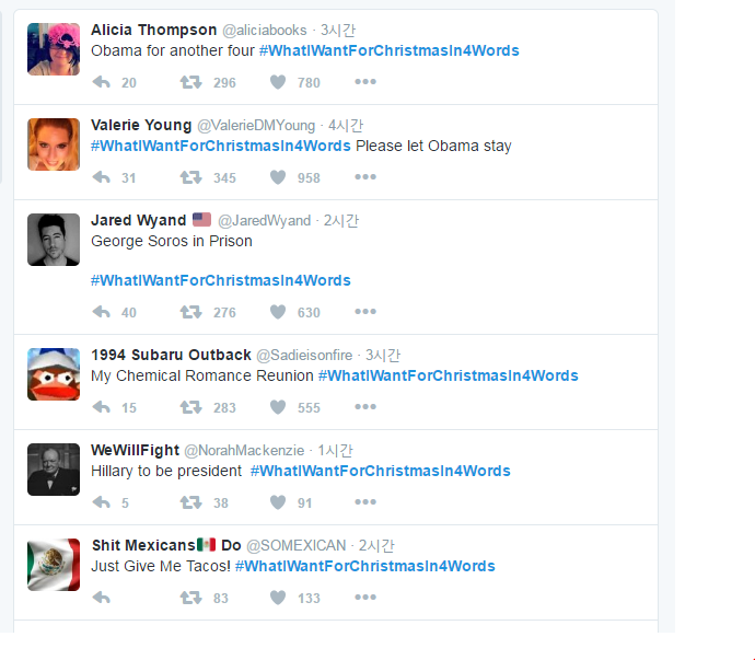 해쉬태그#WhatIWantForChristmasIn4Words 달고