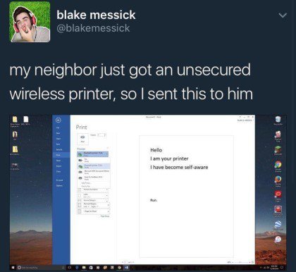 우리옆집사람이 비밀번호 없는 와이파이 프린터를 샀길래 이걸 인쇄시켜줬어