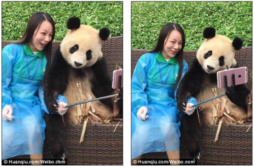 - 셀카봉 들이대자.. 포즈 취하는 판다 .jpg