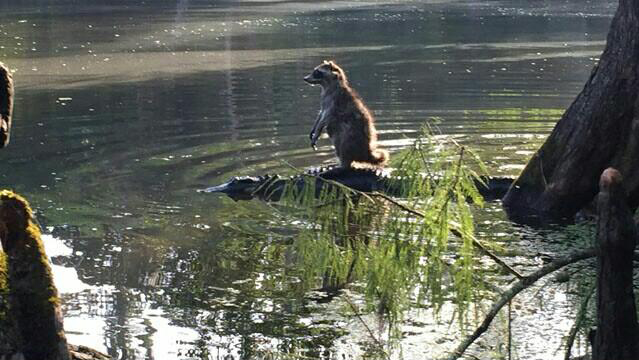 악어 등 뒤에 타고 셔틀 중