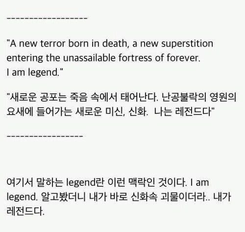 - 나는 전설이다에서 전설의 의미