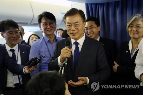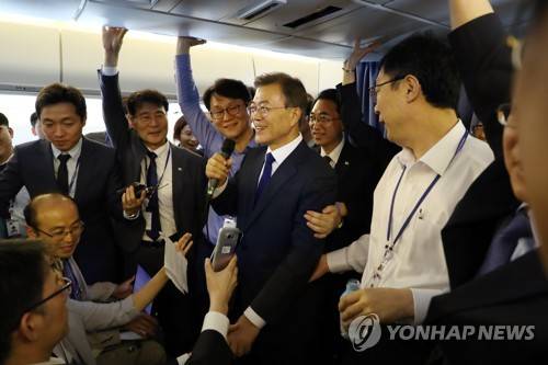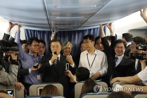 - 문재인 대통령 기내 기자간담회 풍경.jpg