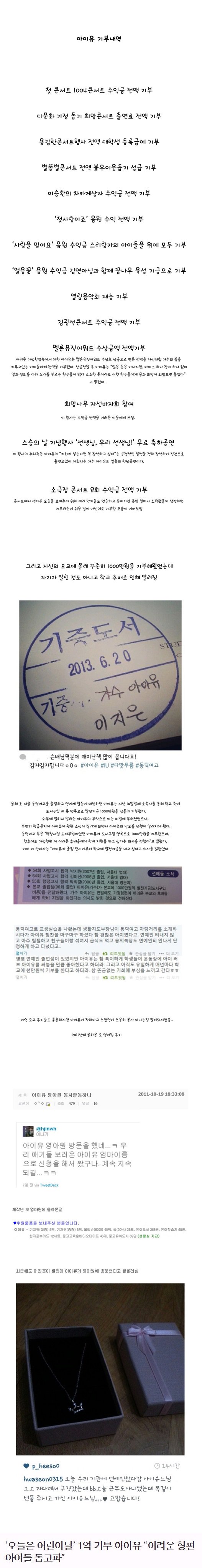 팬들은 아이유 생일 날에 아이유 이름으로 기부나 봉사를 함 ㅋㅋㅋ