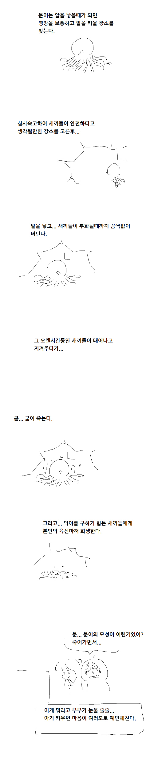 문어가 저렇게 죽는줄 다큐보고 처음 알았네요.