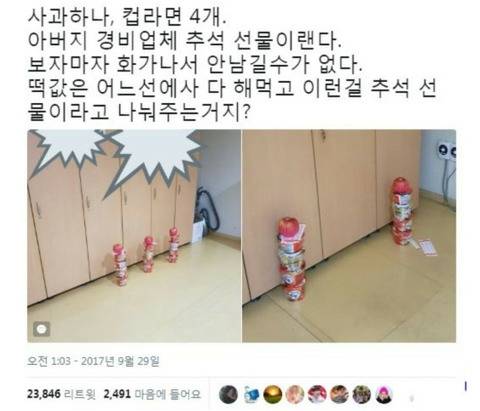 - 추석선물로 컵라면 받은 경비원 글의 진실.jpg