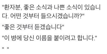 - 의사 : 좋은 소식과 나쁜 소식 뭐부터 들으실래요?