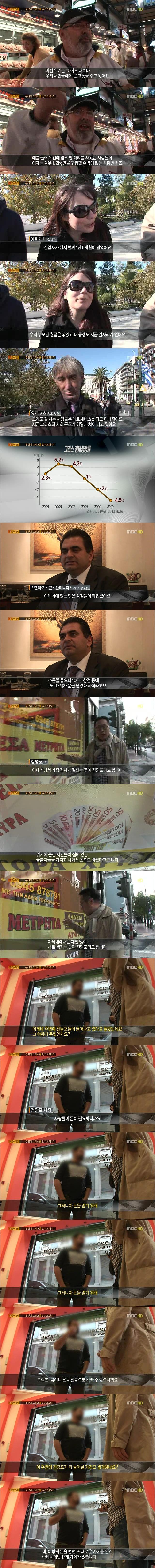 지금 그리스는 엄청난 경제위기를 겪고 있다. 이로 인해 사람들의 소비를 얼게 만들었다. 일자리는 점점 줄어들고 세금은 높아져만가고 자영업종사자들은 점점 없어지고 전당포와 같은 곳이 증가하며,, 사람들의 삶은 어려워지고 있다.