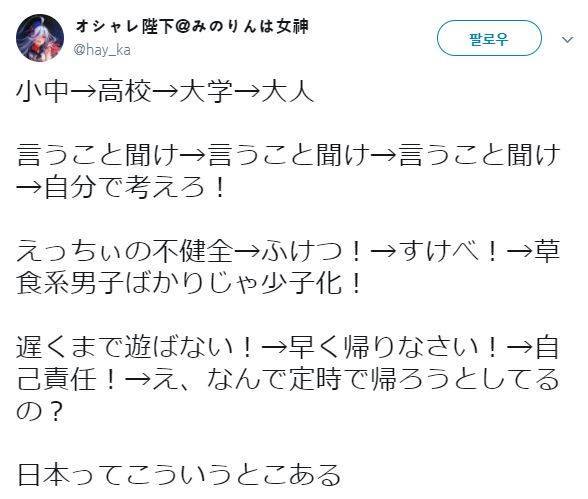 초중 -> 고교 -> 대학 -> 성인