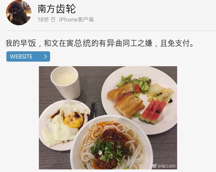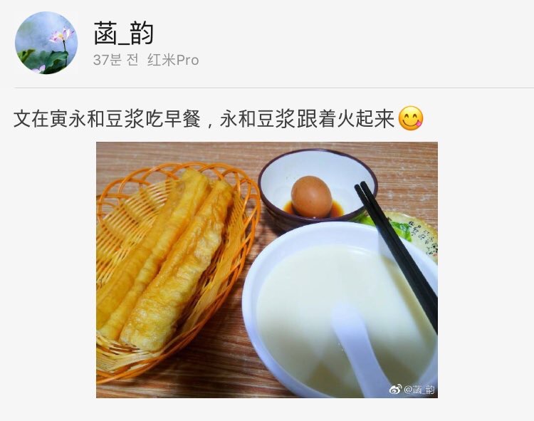 똑같은거 시켜먹은 인증샷 웨이보에 올리기시작함