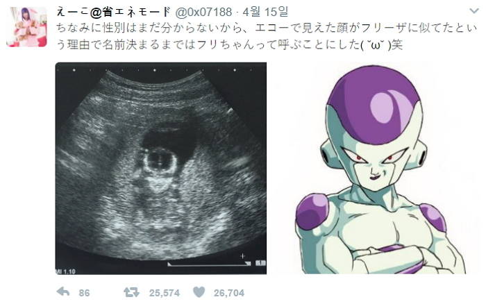 참고로 성별은 아직 모르지만, 초음파에서 보이는 얼굴이 프리져와 닮았으니
