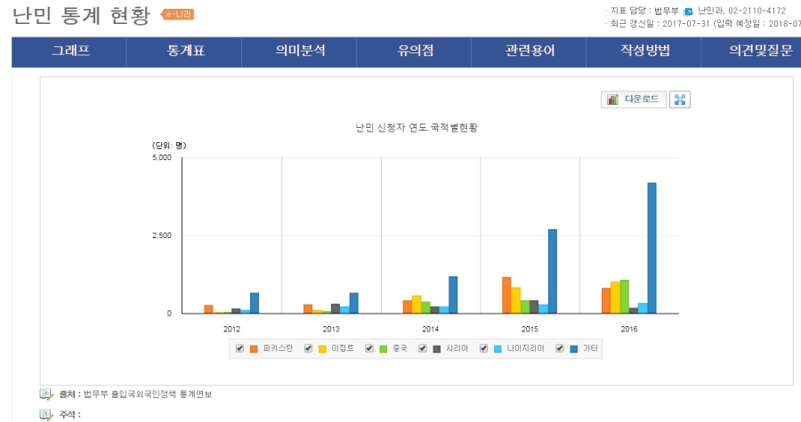 년 500~1,000여명 정도였던 난민신청자가