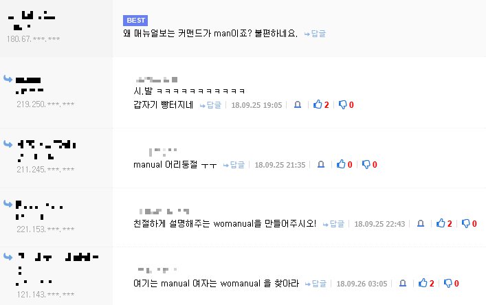 - 왜 매뉴얼보는 커맨드가 man이죠? 불편하네요.