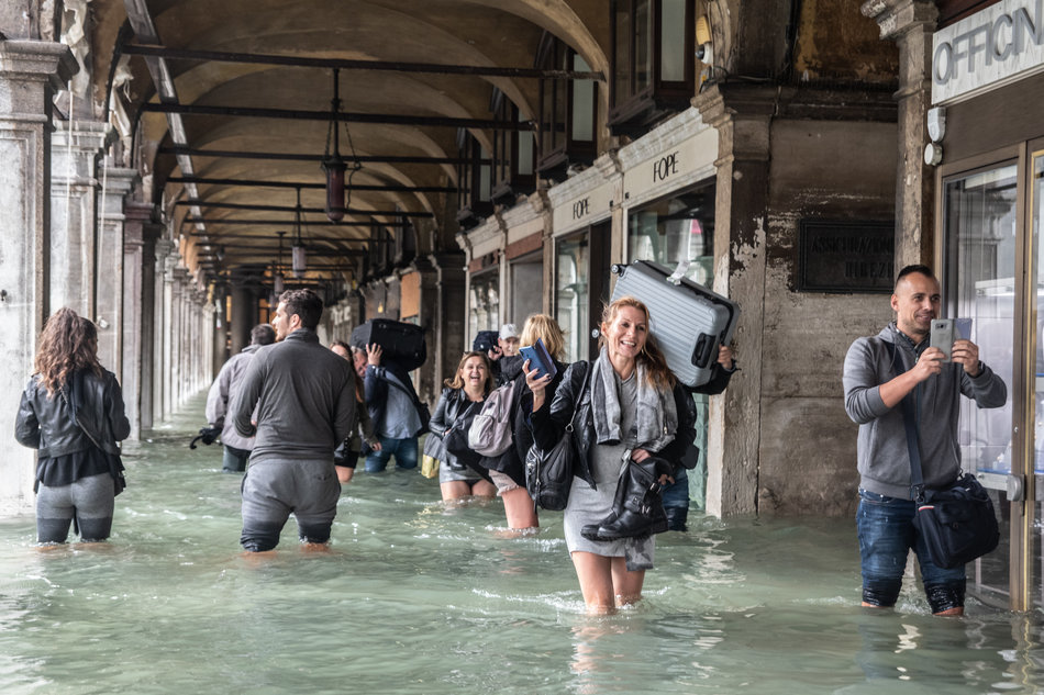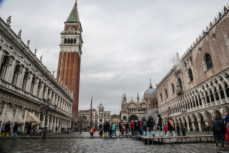 10년만의 폭우로 산마르코 광장 등 주요 관광지를 비롯한 베네치아의 75%가 침수.