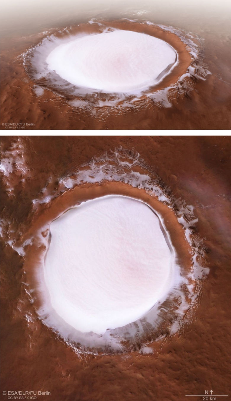 화성 북극에 있는 크롤로프(Korolev) 분화구의 모습.
