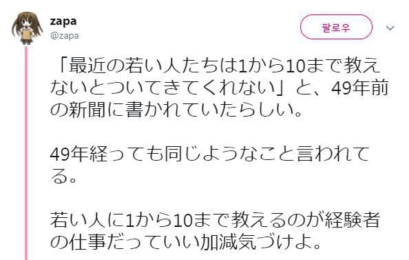 요즘 젊은이들은 하나부터 열까지 가르쳐줘야 따라온다 라고