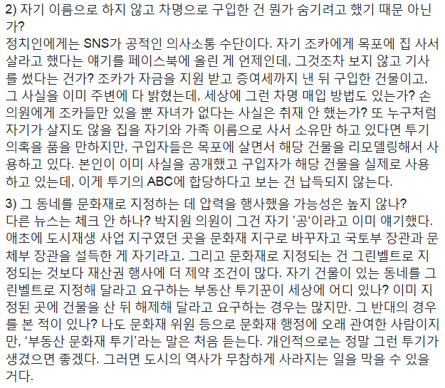 - 손혜원 의원 목포 관련 해명 자료
