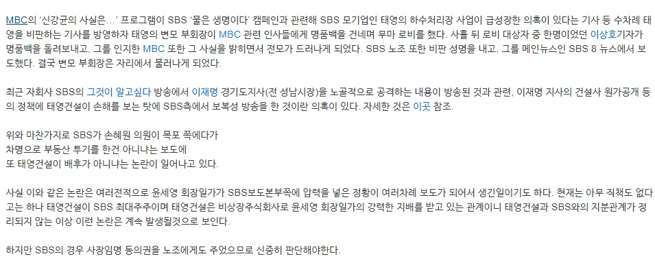전 단 한번도 SBS가 태영건설의 사업 광고를 했다고 말한적 없습니다.