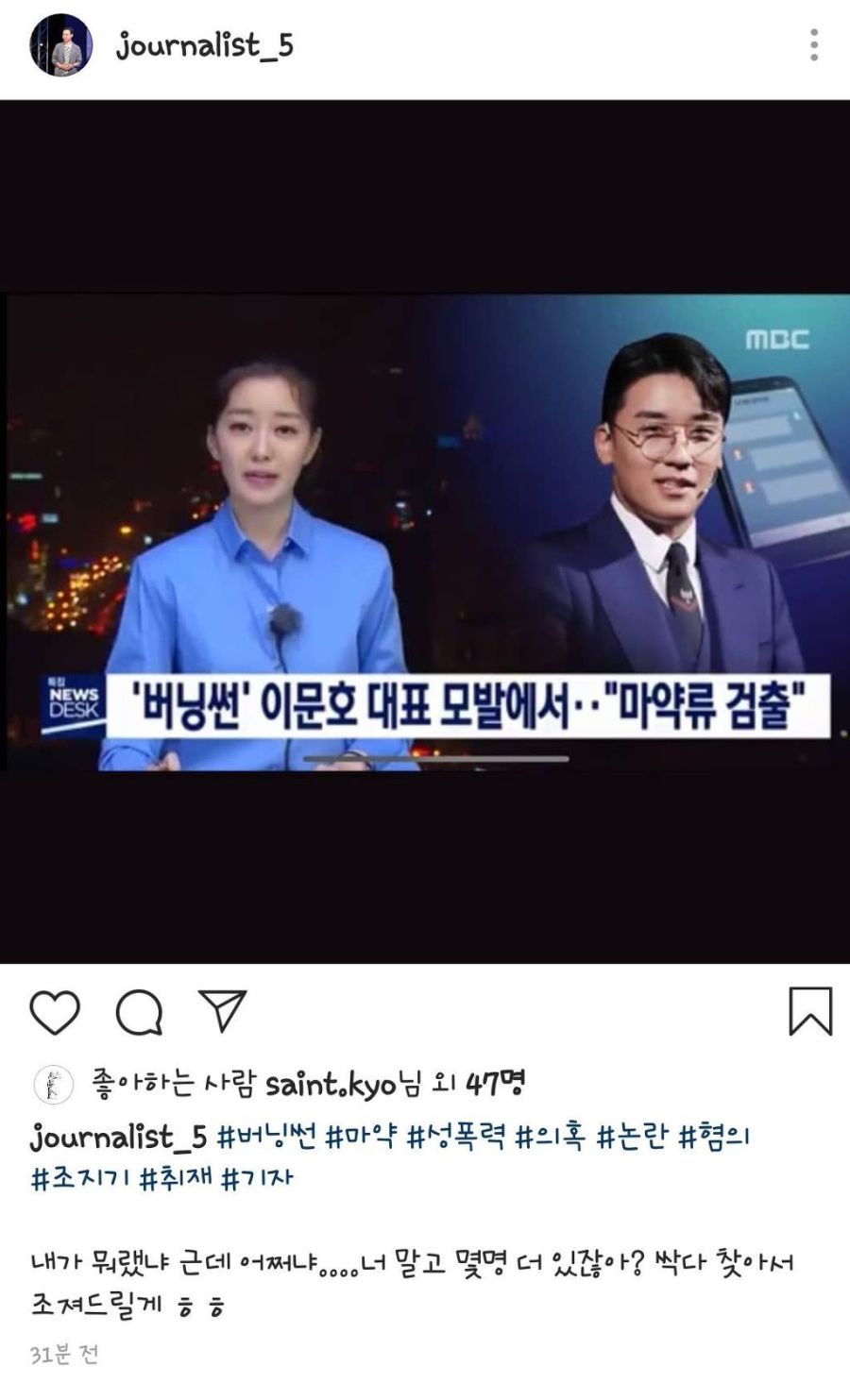 - 버닝썬 관련 보도기자 의미심장한 인스타