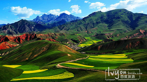 실제로는 중국 치롄산맥에 있는 탁얼산의 유채꽃입니다.