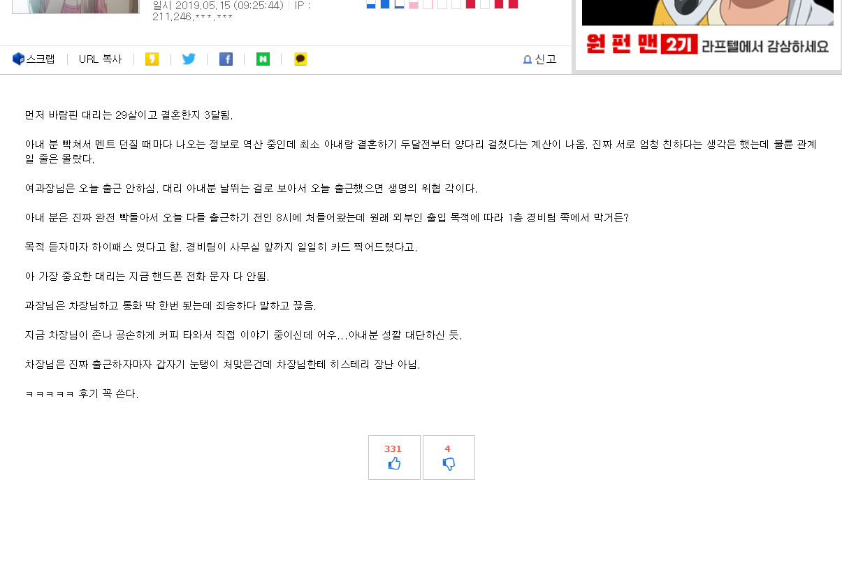 - 루리웹 발 불륜 사건 직관썰 ㄷㄷㄷ