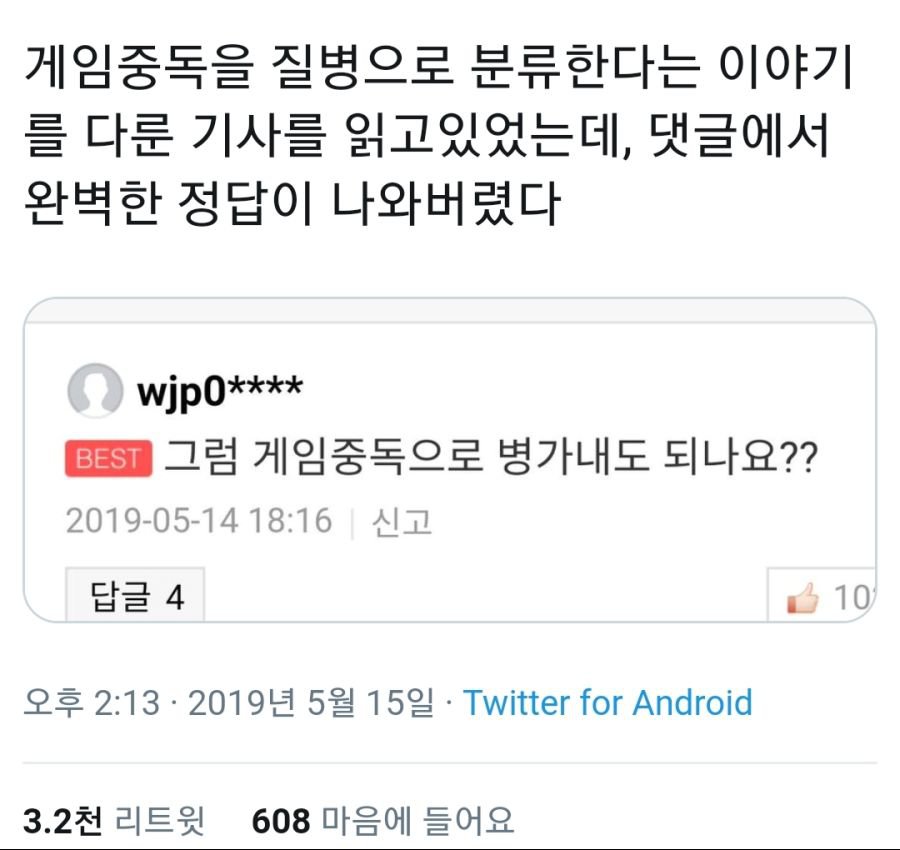 - 게임중독이 질병으로 분류된다면