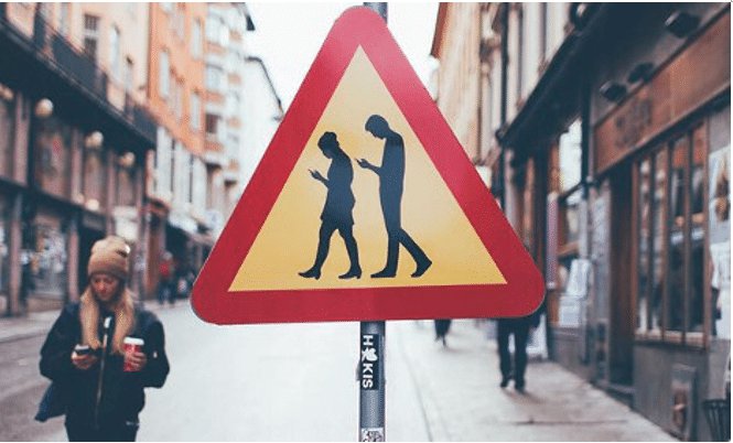 - 스마트폰 좀비. 스마트폰을 보며 거리를 걷는 모습은 흡사 좀비를 보는 것 같다. 최근 스몸비사고로 사회적 문제가 대두되고 있다.