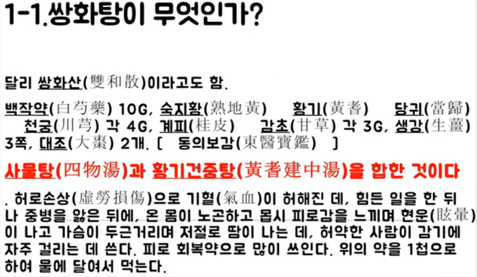 대략 쌍화탕의 효능은