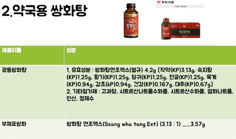 음료수가 아님 약국에서만 취급하는 의약품임 그래서 쌍화탕 탕 이라고 명시된것을 마셔야 효과가 있음