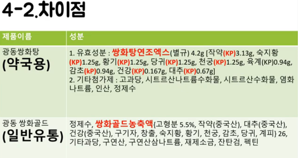 편의점이나 다른곳에서 파는 쌍화 어쩌고는 유사품임 한마디로 쌍화향나는음료임 같은 회사에서 나오는것도 그렇다는