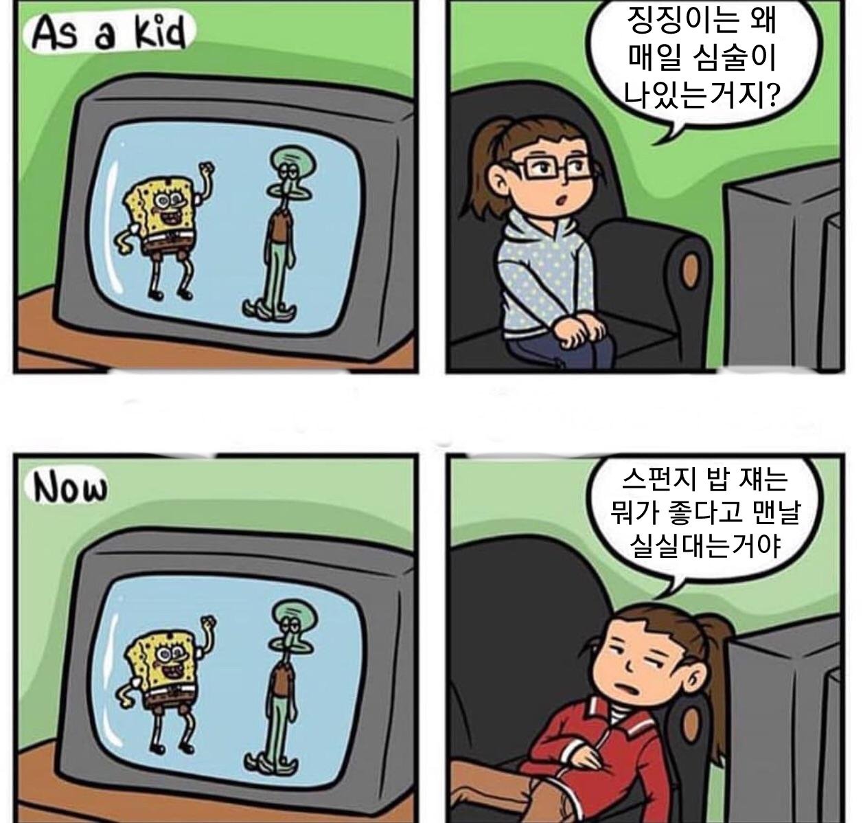 - 스펀지밥을 보며 자란아이는 징징이의 마음을 이해하고