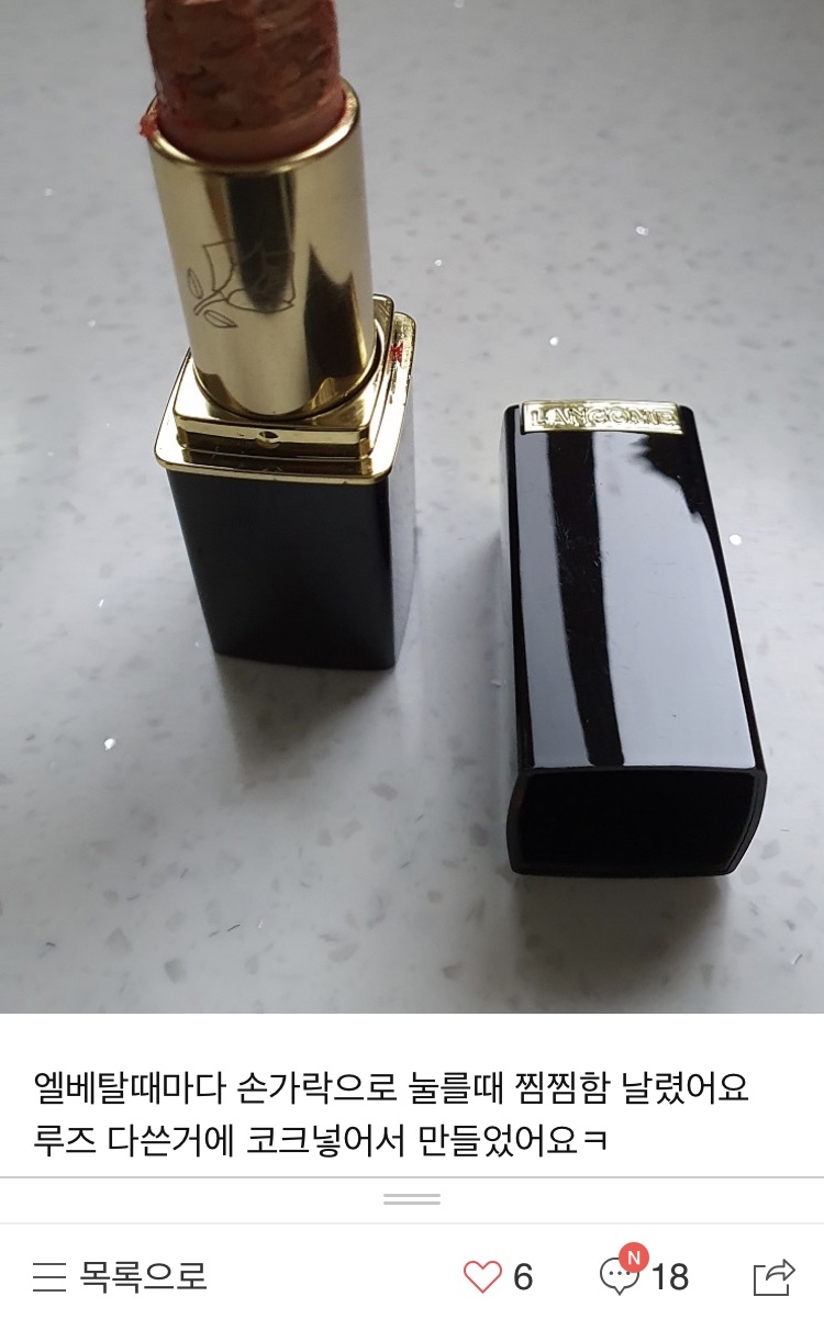 하나는 다 쓴 립스틱 안에 와인코르크 넣어서 뚜껑열고 누르고 뚜껑닫고 한다고 하시더라구요