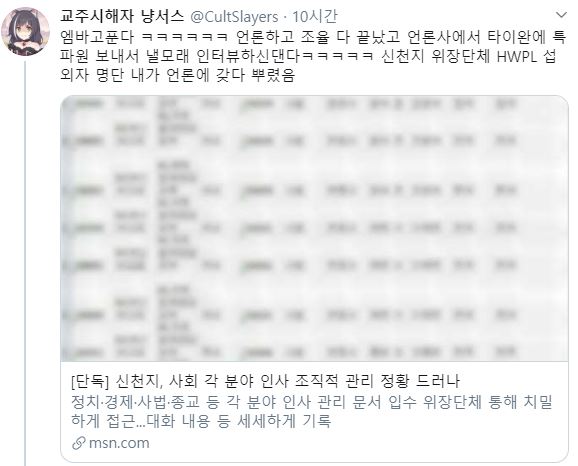 교주시해자 냥서스라는 사람의 트위터인데요... HWPL이란 www.hwpl.kr 입니다. 궁금하면 들어가 보시면 됩니다.