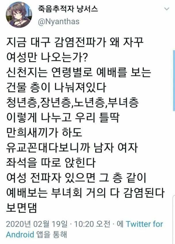 며칠 뒤면 우리나라에서 정확한 신천지 리스트를 뽑아 볼 수 있겠네요.