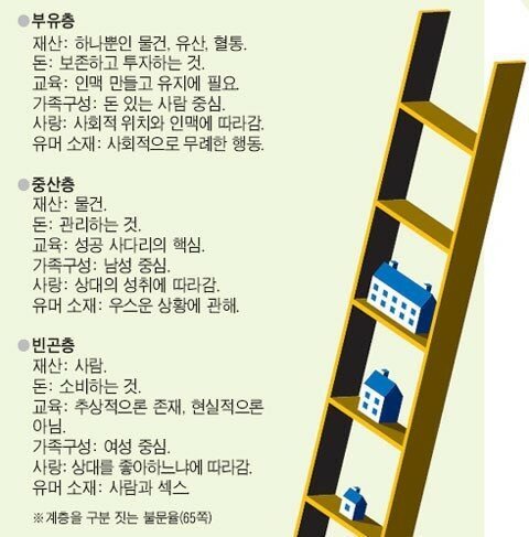- 부유층 중산층 빈곤층의 관념차이