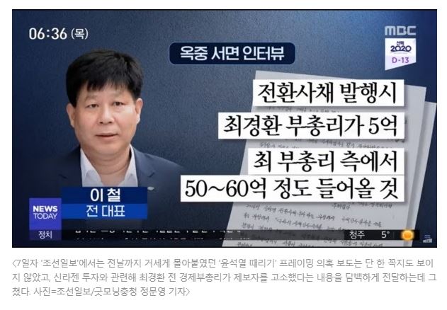 다만 최경환 전 경제부총리가 신라젠 투자와 관련해 제보자를 고소했다는 기사와