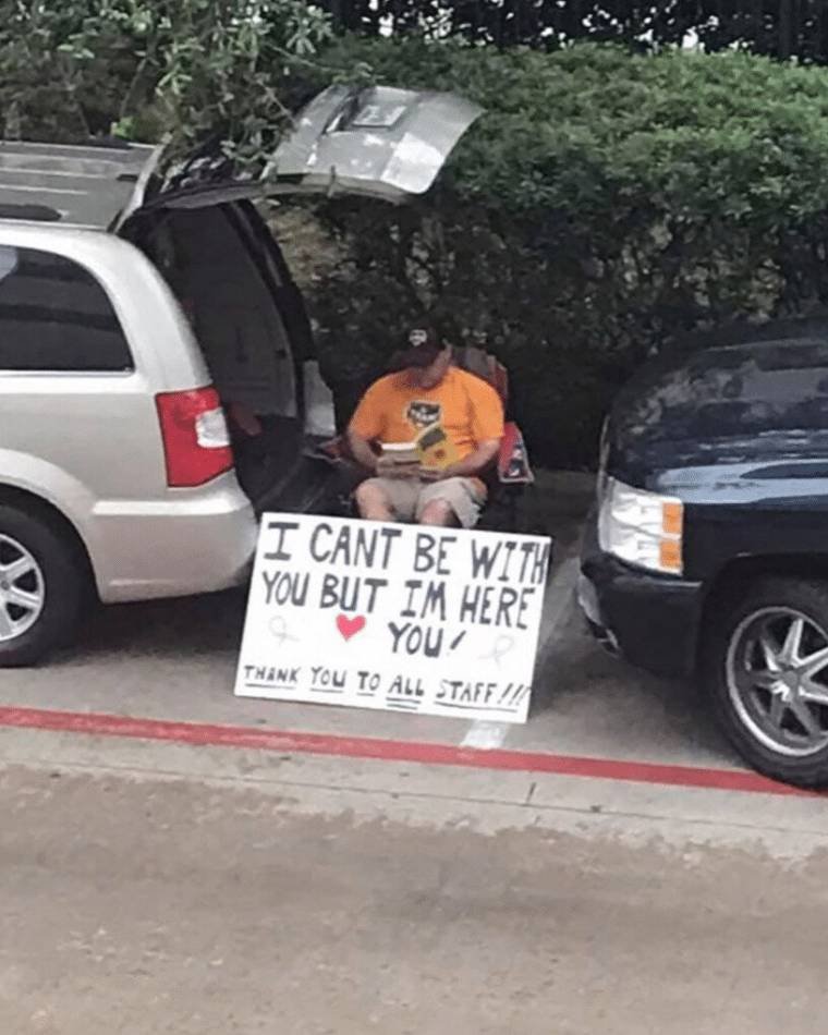 아내가 항암치료 받을때 마다 늘 같이 갔었는데 코로나로 인해 병원측에서 방문객 제한해 함께 들어가지 못하자 판넬을 만들어 기다리고 있었다고 하네요...