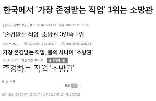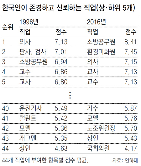 - 대한민국 국민들이 가장 존경하는 직업