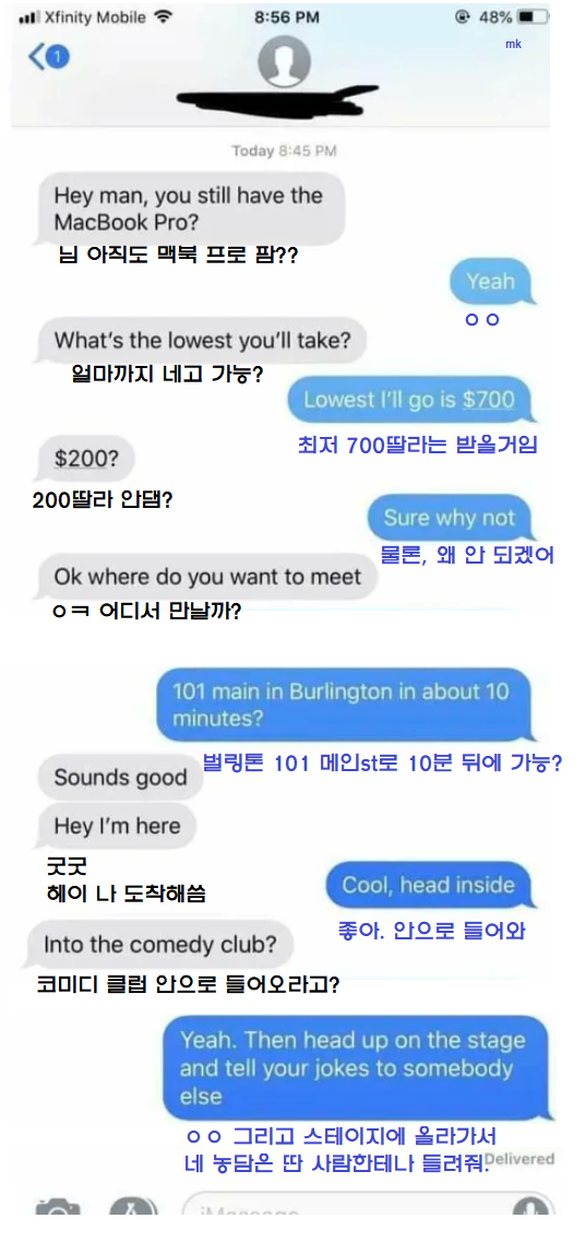 당신은 날 코미디 클럽에 불러서 웃음거리로 만들었어..