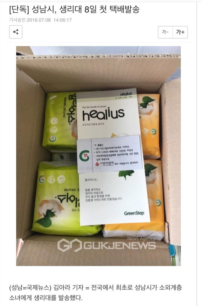 - 성남시, 오늘 생리대 첫 택배발송