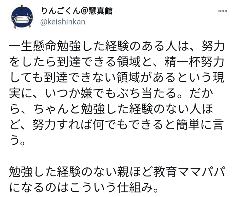 공부한 경험이 없는 부모일수록 교육압박이 심한 부모가 되는 것도 이런 구조.