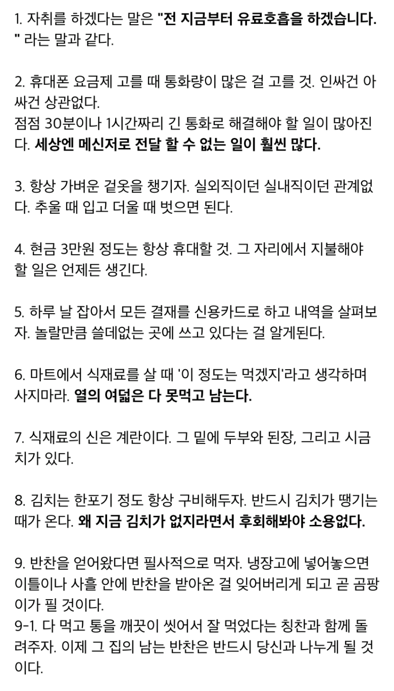 - (펌)30대 직장인이 자취하면서 느낀것들 정리