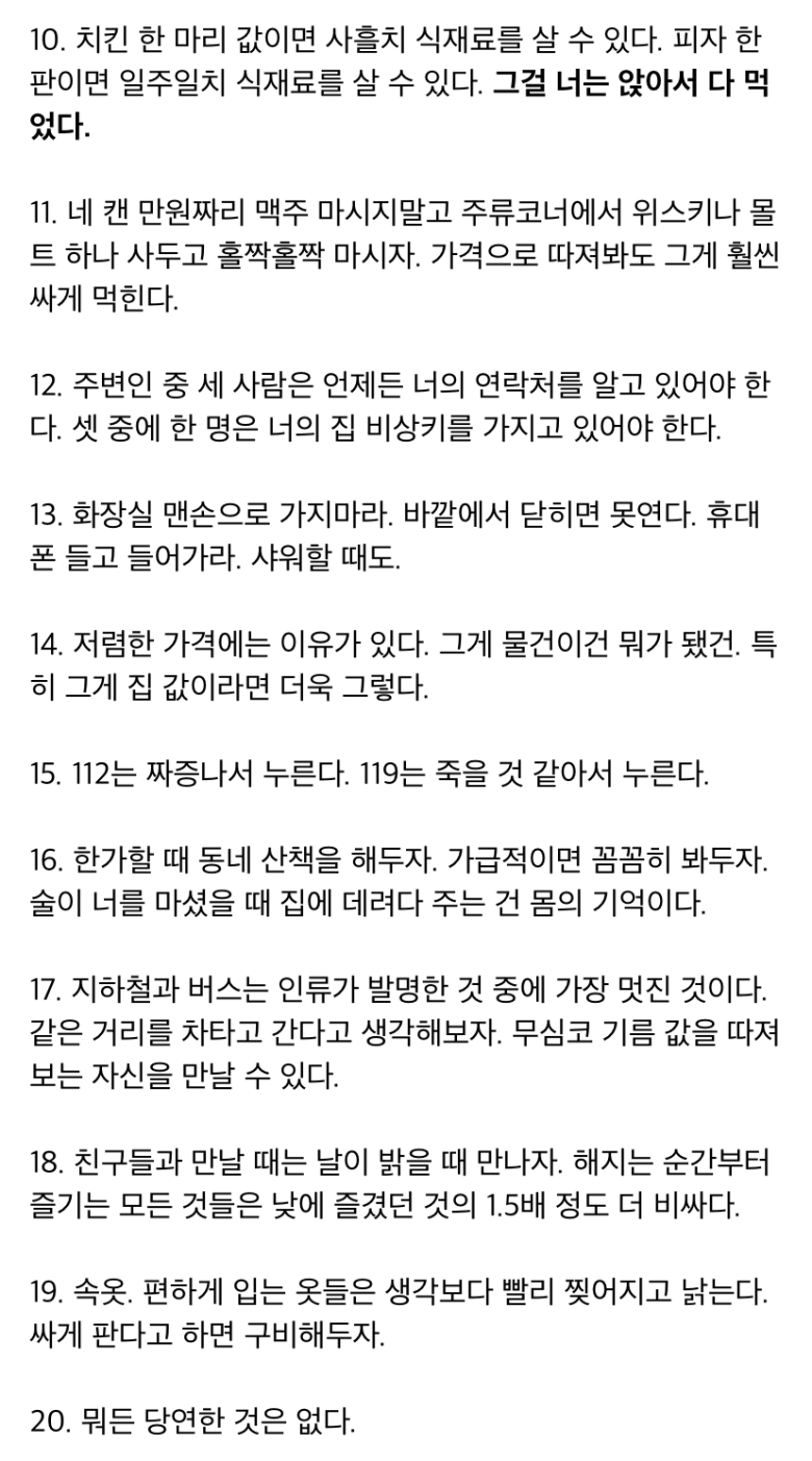 원글은 50개쯤 있는데 제일 공감되는 20가지만...
