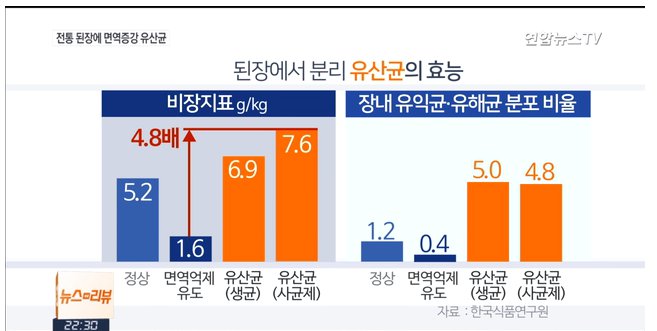 된장 유산균을 생으로 먹나 끓여서 사균(죽은균)으로 먹나 효과가 동일하다는것.