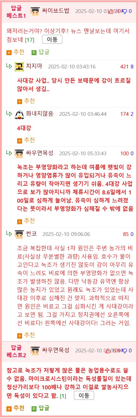 - 하천 녹조 퍼진 동네 주민 절반 코에서 녹조 독소 발견